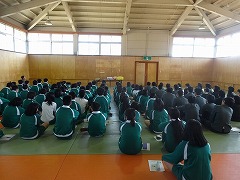 3年生は、本日より救命救急講座に取り組んでいます。本日2校時、学年全員で、消防署の方よりお話と動画で救命救急の理論や重要性を学びました。3・4校時は実技実習です。今日は3年1組が2時間、人形を相手に人工呼吸、心臓マッサージ、AEDの使用等の実習を行いました。救急への通報から、救急車が到着まで、全国平均で8分台。京田辺市で6分台。その間に、倒れている人に、周りの人がどれだけ救命救急を施せるかが、カギです。生徒諸君は真剣に取り組んでいました。