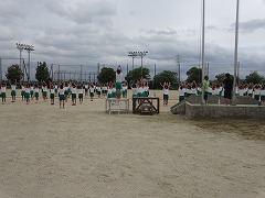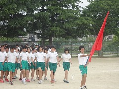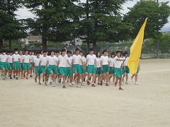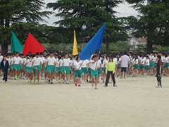 体育大会に向けての初めての全校体育がありました。昼からを予定していましたが、天候の様子を見て、急きょ時間を変えて午前中に行いました。行進の練習とラジオ体操の練習を主に行いましたが、みんなやる気があって、とても短時間に効率的に練習できました。