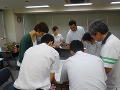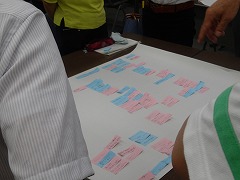 グループに分かれての分散会 1枚のボードに付箋を張り付け協議します。