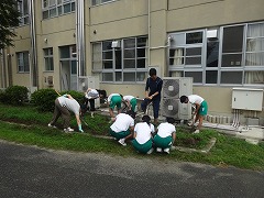 みのり学級では、自立の時間を使って、野菜作りに取り組みます。今日は、2校時、丁度、雨の止み間に、畑の雑草抜きと土の耕しを行いました。ミミズや様々な虫が出てきたりして、ひとしきり大騒ぎになりました。大根を育てる予定と聞いています。立派な野菜がなればいいですね。