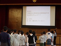 11月2日(木)午後、草内小学校、田辺東小学校、そして区域外小学校(希望者)6年生児童を招いての体験入学が行われました。体育館で培良中学校の説明を受けた後、授業見学、中学校教師による体験授業、生徒会との交流、そして部活動見学を行いました。