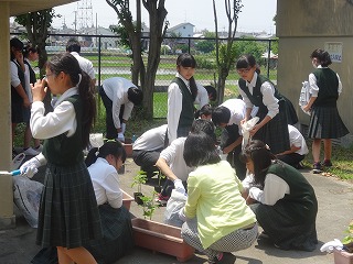 6月23日昼休み、環境委員会で、ヒマワリの苗の植え付けを行いました。男女で仲良く、てきぱきと作業を進めてくれました。ヒマワリの成長のスピードはかなり速いですが、終業式までに元気な花が見られるといいのですね。委員の皆さん、ご苦労様でした。