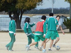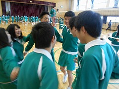 2月25日、1・2年生の学年末テスト1日目の午後、3年生は2時間の体育を行いました。学級対抗のスポーツ大会です。100m全員リレーと、グランドでサッカー、体育館でドッジボールとバレーボールを楽しみました。男女共修です。どのクラスも勝利目指して一生懸命でしたが、厳しい受検日程の中、ホッと一息ついて、みんなで楽しめる取組になりました。実行委員の人たちも、短い日程の中で、準備から当日の運営までしっかりとやってくれました。