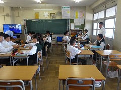 1年生数学の授業を参観しました。少人数授業で、グループでトランプを使った作業をしたり、話し合いをしたり、生徒諸君は、場面場面をきちんと切り替えて頑張っていました。