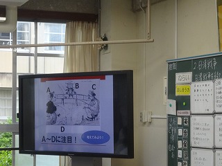 グループで話し合った結果を黒板に提示 電子黒板の活用