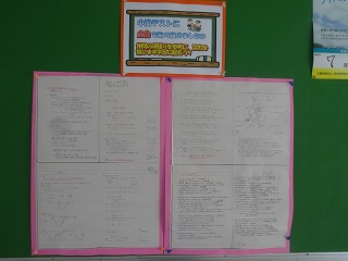 3年生学年廊下、家庭学習ノートの優秀なものが掲示されていました。