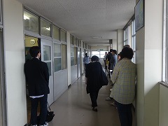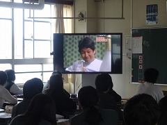 学校公開受付 1年生フロア 多くの保護者様に参観いただきました。 3年道徳、映像資料をもとに