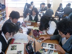 3年生、進路体験発表の様子 進路体験のレポートづくりの様子