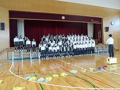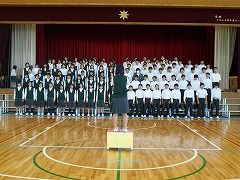 9月21日(水)には、各学年、体育館で学年音楽の時間を持ちました。学年合唱の入退場の仕方と歌の練習、各学級の入退場とクラス曲の合唱を行いました。