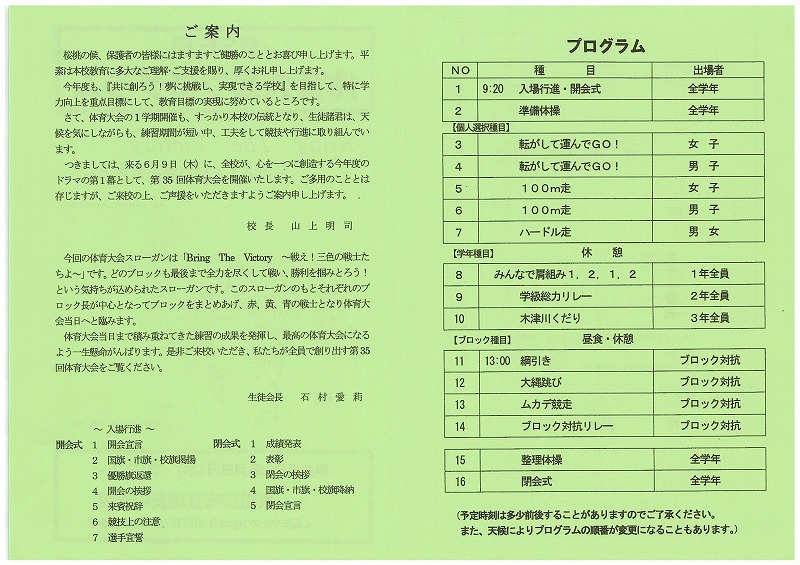 明日の体育大会のプログラムをアップロードしておきます。必要な方はどうぞご自由に印刷してください。