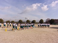 寒い日が続きますが、体育の授業では持久走が行われています。今日の2時間目に3年生がグラウンドで「グループペース走」を行いました。20分間で何メートル走れるか「自分の目標記録」を設定し、同じ目標の生徒同士が一つのグループになって走ります。どの生徒もしっかりと走りました。寒い日こそ持久走ですね!