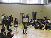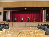 6校時、体育館で新入生歓迎会が行われました。開会行事の後、各部が部活の紹介を行いました。様々なパフォーマンスもあり、楽しいひと時となりました。明日から、1年生も部活動の仮入部となります。3年間打ち込む部活動です。しっかりと考えて選んでください。