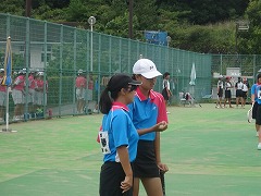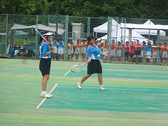 昨日延期になった山城地方体育大会ソフトテニス女子団体戦、太陽が丘で熱戦の火ぶたが切られました。1回戦、西宇治中相手に、健闘し、互いに1試合ずつ勝利し、最後の試合に託されました。粘りましたが最後は惜しくも敗れました。テニス女子の今大会は、ここで終わりましたが、綴喜大会から今日まで、粘り強さを発揮した戦いぶりでした。ご苦労様でした。応援も息がそろっていてとてもよかったです。