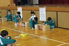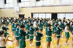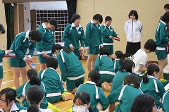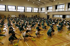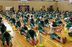 本日2校時から4校時を使って、全校一斉に、新体力テストを行いました。あいにくの雨で外は使えないので、種目数を減らして体育館と柔道場を使って行いました。狭い会場ですが、場所を有効に使って、時間内に全種目終わりました。