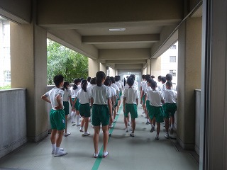 渡り廊下や体育館で行進練習