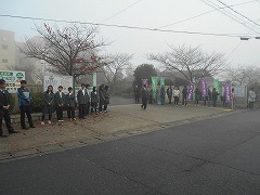 今日は霧が濃かったです。 PTAの皆様 生徒会本部も参加