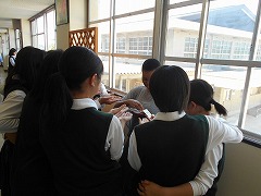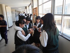 6月15日、昼の放送で、放送委員がALTの先生にインタビューを行いました。そして、昼休みに、ALTの先生を探して、インタビューで使った英語の表現で話しかけようという取組を行いました。廊下などで、ALTの先生をつかまえて、英語で話しかける生徒諸君の姿があちこちで見られました。話しかけた生徒は、特別のカードがもらえたそうです。