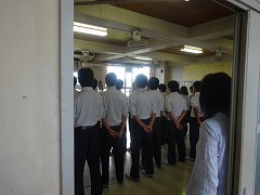 先週金曜日から放課後の各学級の合唱練習が始まっています。教室では、パートに分かれてのパート練習、音楽室や体育館の割り当てが当たっている時間には、学級全体で合わせる練習を行っています。時間にすると正味20分ほどですが、この時間帯は校舎中が歌声で溢れ、中学校の良さを感じるひと時でもあります。
