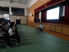 また、生徒諸君も授業にしっかり集中し、山﨑先生のお話も、しっかりと自分のこととして聞けました。体育館の準備、後片付け等、部活でやってもらいました。ありがとうございました。