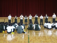 いよいよ6月11日の体育大会に向けて、各ブロックが動き出しました。本日放課後、各ブロックの結団式が行われました。これから体育大会本番まで、各ブロック3年生を中心にして、競技や行進の練習をします。どのブロックも時間を有効に使って、ブロック長をはじめ、役員の紹介や、みんなで気合を入れたりと、体育大会に向かって、やる気あふれる取組となりました。体育大会本番が楽しみです。