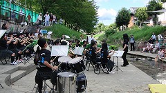 吹奏楽部が防賀川コンサートに出演しました。防賀川沿いのステージで、地域のお年寄りから子どもまで、多くの方々の声援を受け、アンコールも含めて4曲披露しました。夏のコンクールで培良中としては初めて金賞を受賞したことを伝えると、温かな拍手が届きました。和気あいあいとした雰囲気の中で、軽快なサウンドが響きました。