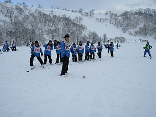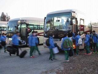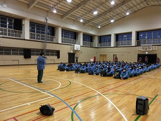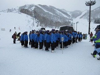 2年生は今日から信州白馬方面に修学旅行に出かけました。朝6時15分集合完了。時間通りに出発しました。参加者は、2名欠席で、生徒103名、教員9名です。途中、名古屋付近での事故渋滞や白馬付近の雪のため少し到着が遅れましたが、2時ころホテルに到着。その後、遅れた時間を取り戻づべく、みんな猛ダッシュで準備をして、開校式と第1回目の講習に入りました。