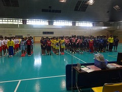 ハンド開会式 男子バスケット 3年生がいない中善戦しました。