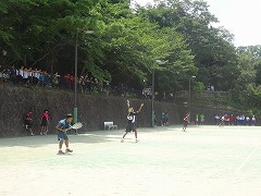 テニス男子 リーグ戦1勝2敗 惜敗。応援の声は1番。みんなが勇気づけられました。 大応援団
