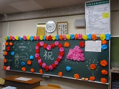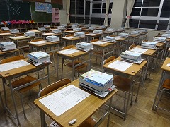 先輩が、金曜日に教室の飾りつけや教科書の準備をしてくれました。
