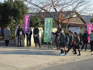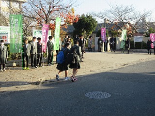 今日から2日間、8時15分より、PTAが中心となって朝の挨拶運動を進めていただいています。本校の教職員、新生徒会本部役員も一緒に、校門で登校してくる生徒に「おはよう」のあいさつをかけています。