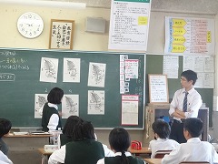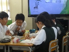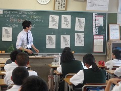 教育実習生の授業を参観しました。1年生の理科です。今日の題材はシダ植物。胞子で増えることや、種子植物と同じように葉や根や茎があることなどの特徴がうまくまとめられていました。生徒諸君も、実習生の先輩をアシストしようと張り切って授業に取り組んでいました。特に、シダ植物の絵(ワラビ)を、葉、茎、根に分けてみる作業は、班で相談しながら楽しく取り組んでいました。今週いっぱいが実習の期間です。ラストスパートがんばれ、先輩。