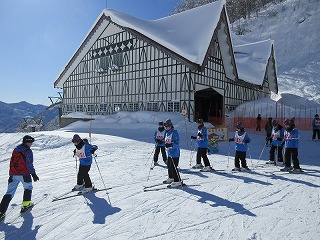 生徒諸君は元気にスキー講習に出かけました。今日はリフトに初挑戦。午前中の終わりがけには、ゆるい傾斜は何とかプルークボーゲンで滑り降りられるようになってきました。昼食はカレー。何杯もおかわりをしている人が多かったです。