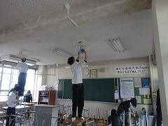 3年生は、本日1・2校時、普段使っている教室、その他の場所を徹底的にきれいにしました。いつもの掃除ではやらない扇風機の掃除や、エアコンのフィルター掃除など、みんなで1年間使った教室をきれいにしてくれました。