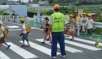 8月28日(水)、始業式のこの日はPTA地域委員が中心となって登校中の子どもたちの安全確認や付添い登校をしていただきました。