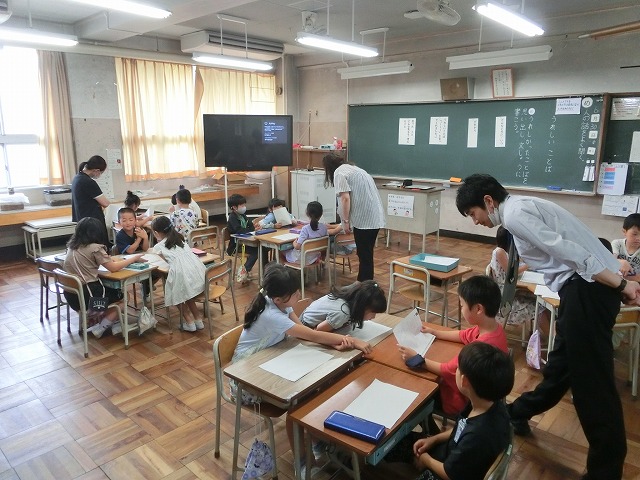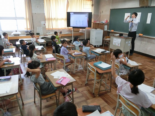 6月30日(金)今日の1・2時間目に指導主事計画訪問ということで、山城教育局の指導主事様、京田辺市教育委員会の教育委員様・指導主事様に来校いただき、学校、子どもたちの様子を見ていただきました。子どもたちはいつもより緊張した先生方の雰囲気を感じてか、少しおとなしい様子でしたが、たくさんのお客様の来校に張り切ってがんばっている様子でもありました。