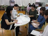 それをうけて、子どもの健康や体力を向上させるためには、家庭や地域で何ができるのだろう、「食事は気を付けないとね。」「近くの公園ではボール遊びができないし・・」「家族で遊びに行くといっても、自然の中で過ごすことをつい忘れてしまってるよね。」「でもできることがたくさんあるから、少し気をつけていきましょう。」など、さまざまな意見を交流していただきました。