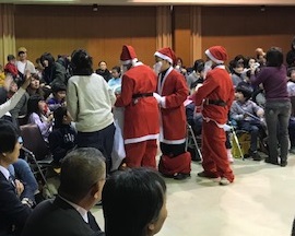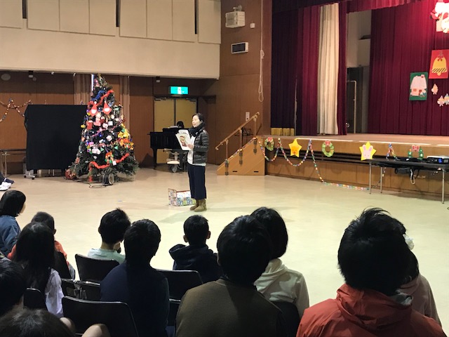 12月13日(水)京田辺市合同なかよしクリスマス会を行いました。この催しは京田辺市内の各小・中学校及び幼稚園、保育所の特別支援学級等に在籍の児童・生徒・幼児及び特別支援学校在籍の児童生徒相互の交流・親睦を図ることを目的として行っています。内容は大きなクリスマスツリーをみんなで飾ったり、各校からの出し物を披露したり、みんなで歌を歌ったり、サンタさんからプレゼントをもらったりして、楽しい時間を過ごしました。本校からも特別支援学級の児童が参加して、練習してきた歌やダンスを披露しました。ご協力いただきました皆様ありがとうございました。