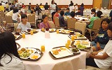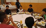 ホテルで朝食をとっている様子です。