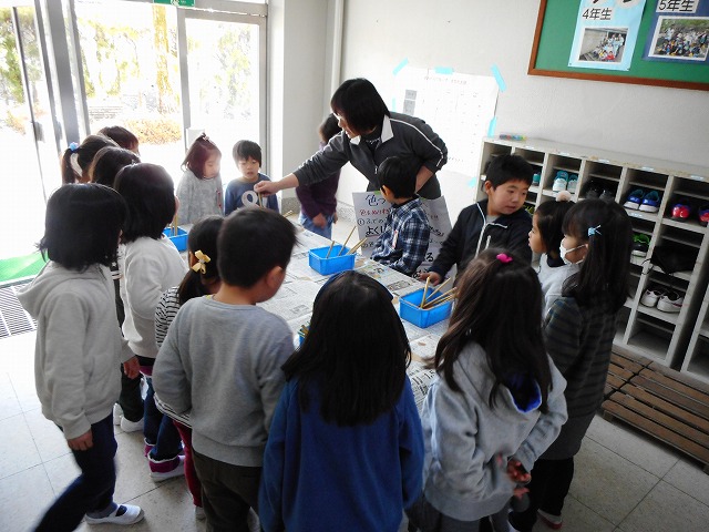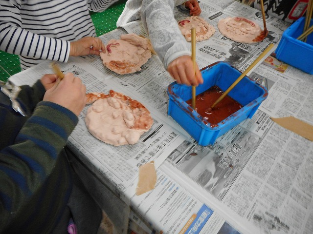 1月25日(木)1、2年生がらく焼きの絵付けを行いました。絵付けは図画工作科の時間に焼き物用粘土で作った作品に色を付けるものです。初めて粘土に色付けをする1年生にとっては、興味津々で、思い思いの色を付けていました。出来上がりがとても楽しみです。なお、出来上がった作品は来月2月6~8日に行う作品展に掲示する予定です。