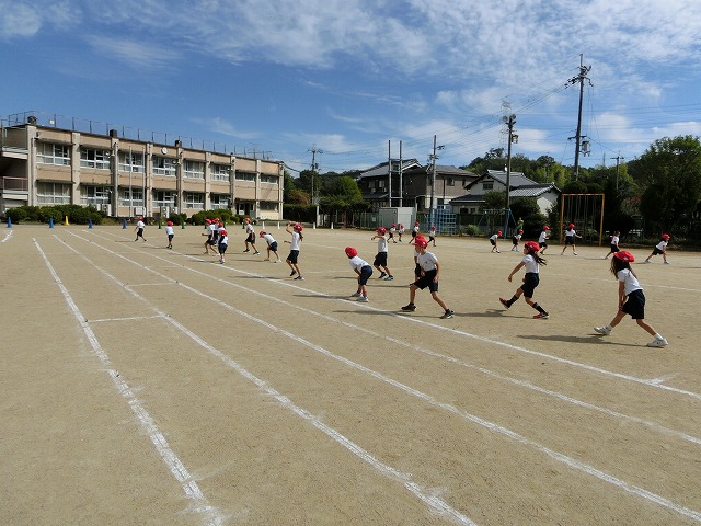 10月23日(月)今日の3時間目は1・2年生が表現練習をしました。踊りごとのフォーメーションにバラエティーをつけるための位置確認を含めて、踊りの練習をしました。今日も一所懸命ジャンプしている子どもたちの姿は、かっこよかったです。