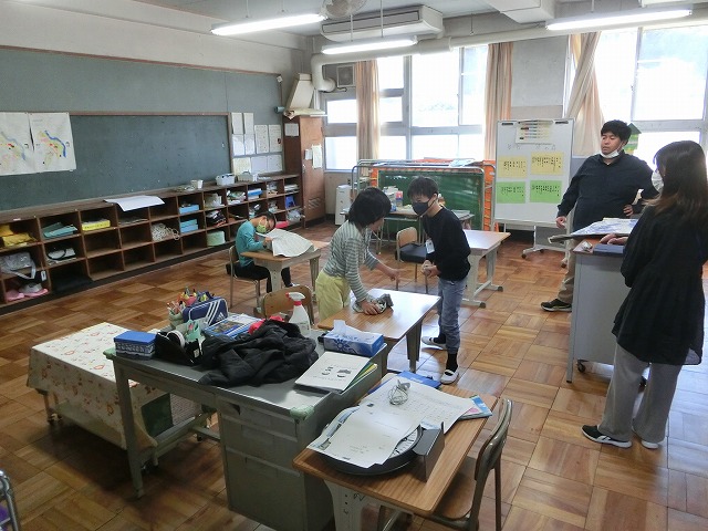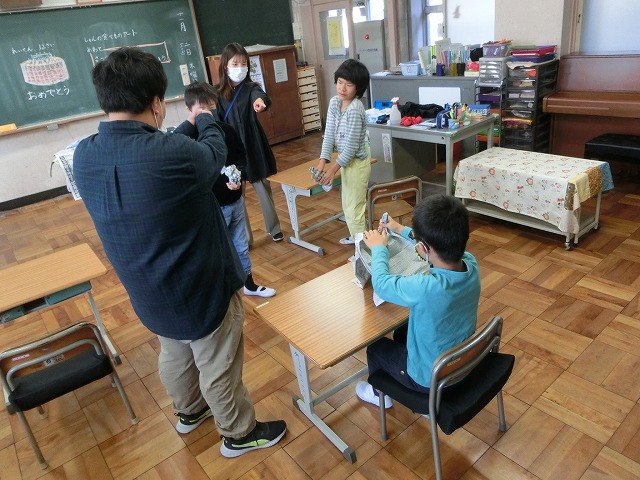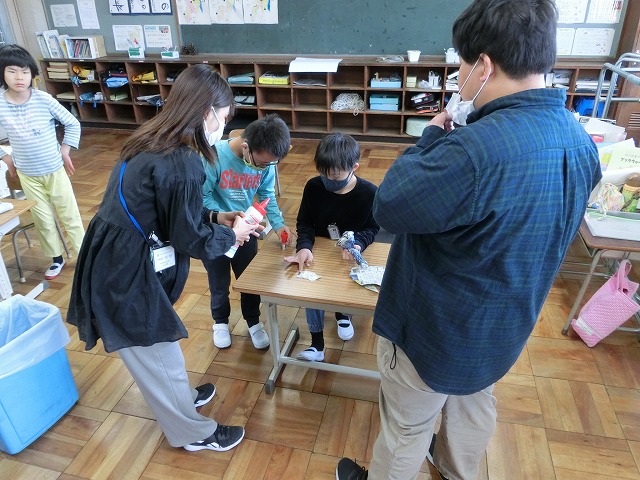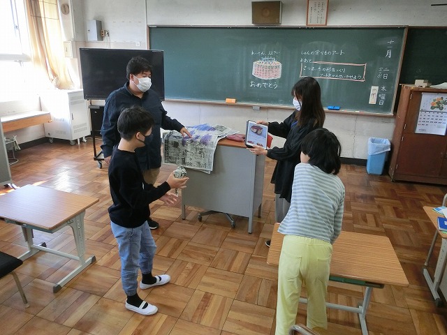 11月2日(木)今日は「さつまいもの形をつくりアートをかんせいさせよう」をめあてに、さつまいもづくりに取り組みました。今日も栄養教諭の平塚先生と一緒に、よりリアルなさつまいもをめざし、完成させました。