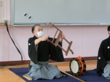 これは、「文化を未来に伝える次世代育み事業」といって、「質の高い文化・芸術を体感する機会を提供することにより、豊かな心を育成するとともに、京都の文化・芸術の振興と次世代への継承を図ること」を目的とした事業です。本校では、3年生が音楽の授業として体験をさせていただきました。