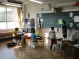 全校児童が集まることはせず、校長室から各教室にメッセージを送りました。