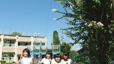 白い百日紅は、夏の植物で、真夏の暑い日からもう3ヶ月近く花を咲かせています。10月の運動会の頃には、そろそろ見納めでしょうか・・・