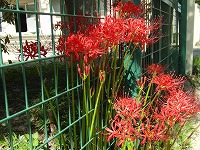 今、学校周辺で目に留まる2つの植物の花があります。一つは白い百日紅(さるすべり)、もう一つは赤い彼岸花です。