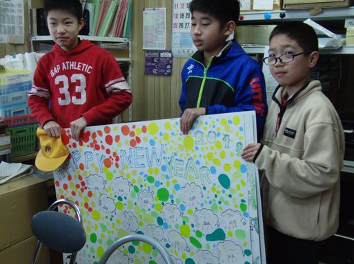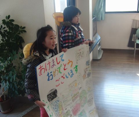 1月19日(月)、児童の手作りのジャンボ年賀はがきを届けました。
