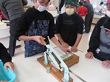 子どもたちは講師の先生に教えてもらいながら、1枚1枚切っていきます。