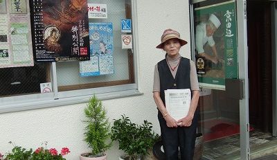 「舞妓の茶本舗」では、一人一人に手渡しをして普賢寺小学校を紹介していただいています。有り難うございます。これからもよろしくお願いします。