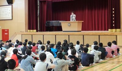 4月30日(水)、全校朝礼を行いました。子どもたちには、始業式で紹介したがんばってほしいことをもう一度確認しました。