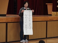それは、「大きな声であいさつをしましょう」と「ていねいな言葉を使って、人権を大切にしましょう」の2つです。この1年間、様々な場面で努力しましょう。